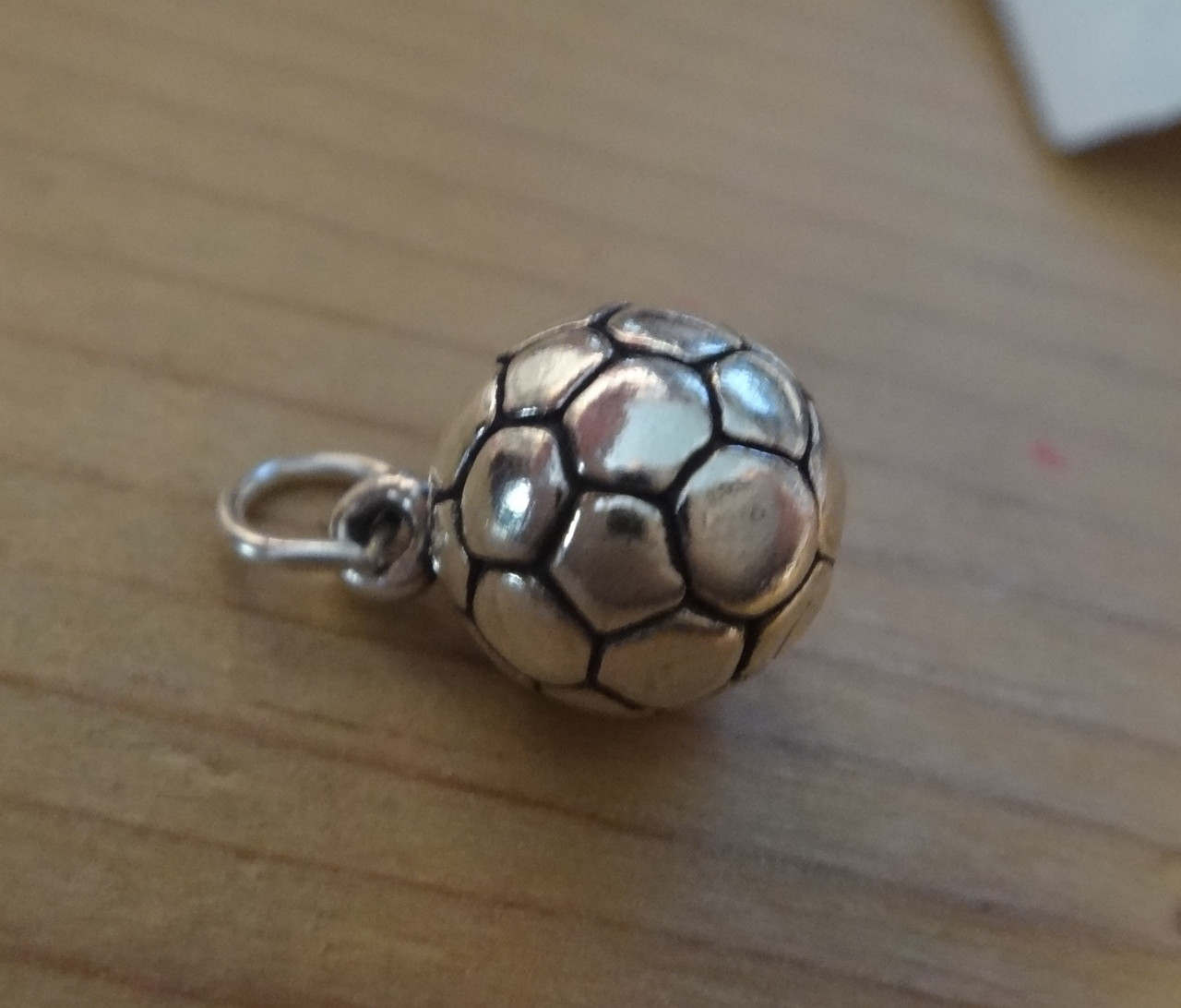 10mm 3D 5 gram Solid Soccer Ball Sterling Silver Charm!