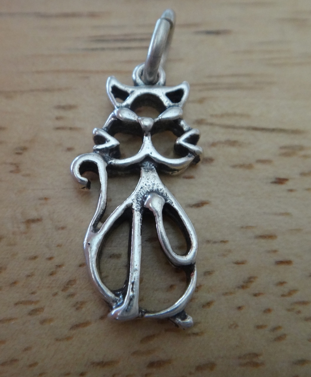 This sterling silver charm is a large cat outline. It is 21 mm tall and 11 mm wide.