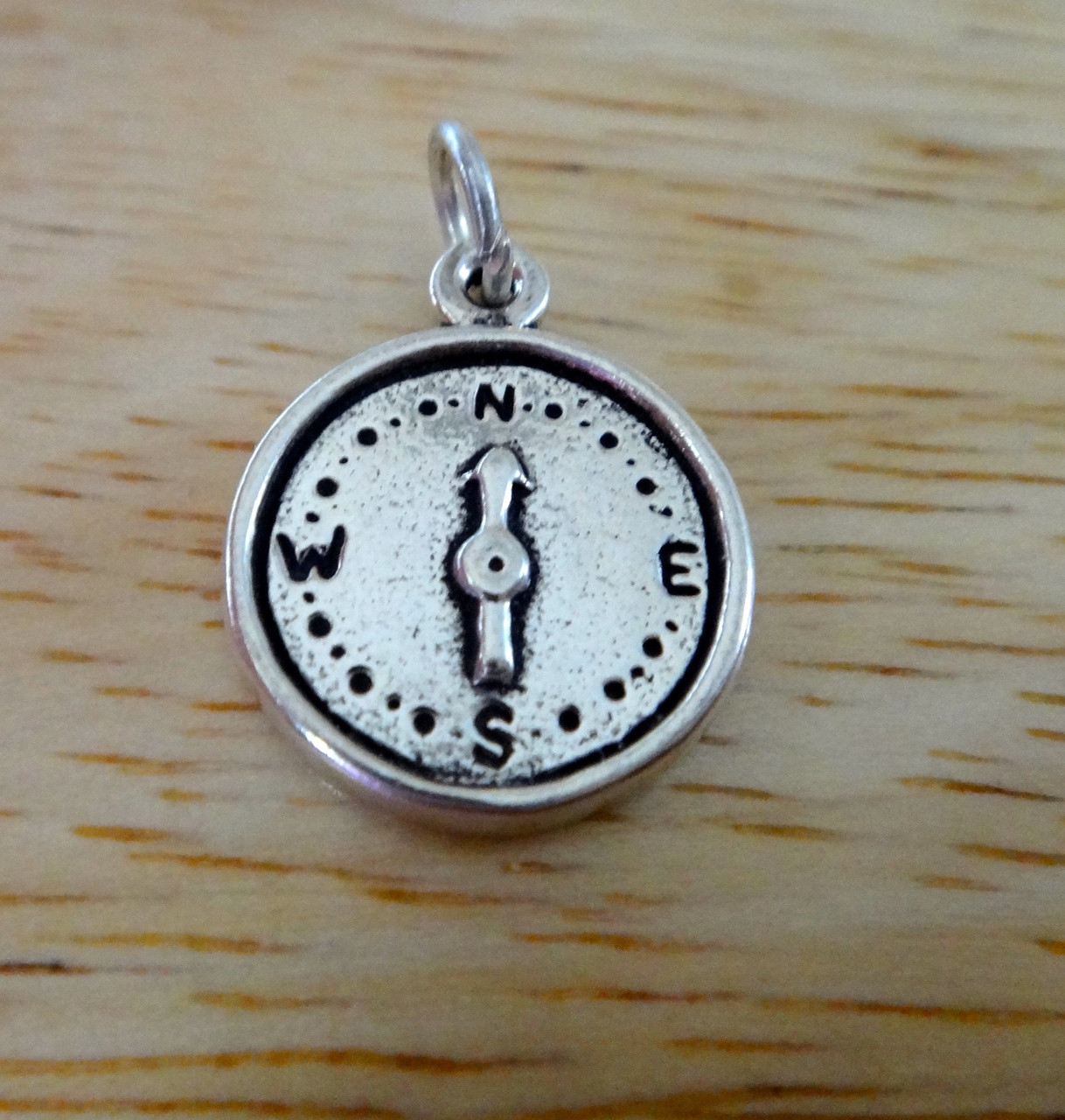 - 14mm Scouts Camping Traveler Compass Sterling Silver Charm