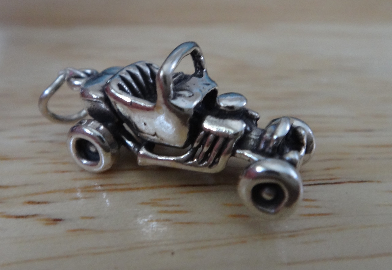 3D 23x11mm 4-5g Hot Rod Jalopy Race Car Sterling Silver Charm