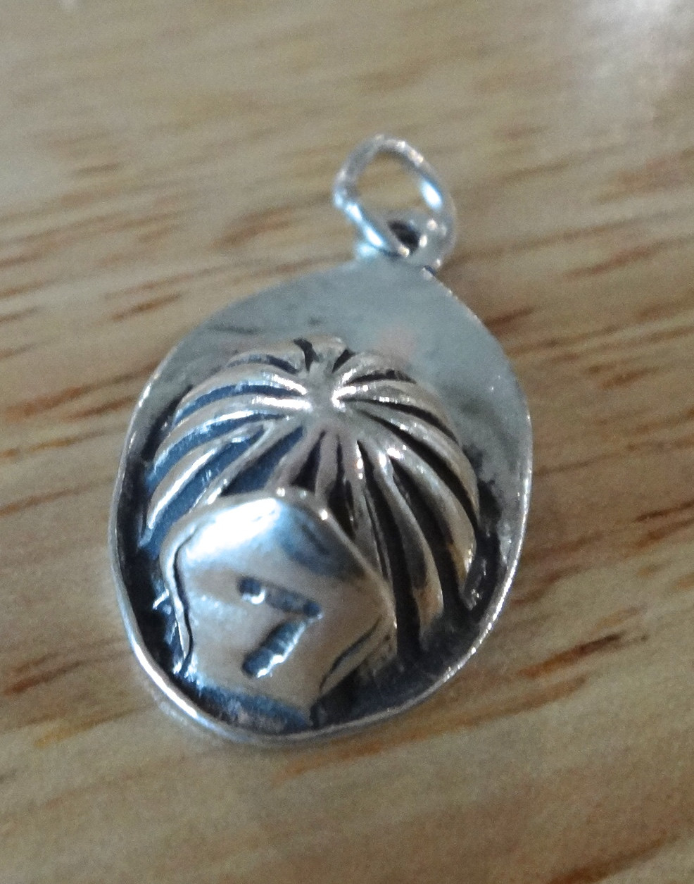 This sterling silver fireman's helmet looks like the real thing. It is very detailed with the number 7 on the front badge! It is 3 dimensional at 1.4 cm wide, 2.3 cm tall and .8 cm thick. It is very detailed front and back!