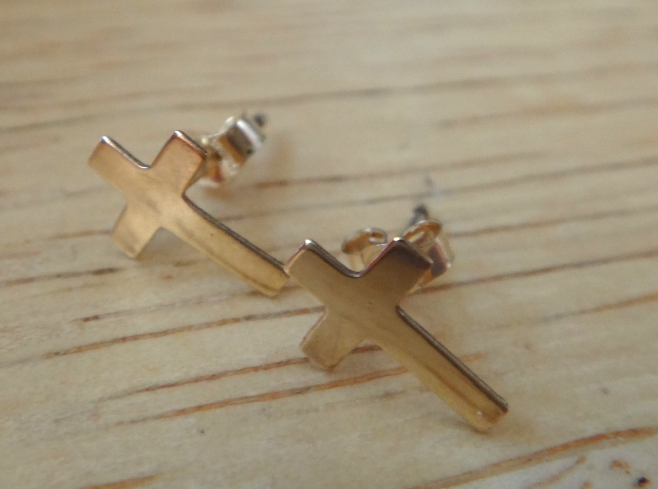 - Gold Filled TINY 6x9mm Plain Flat Cross Studs Posts Earrings!