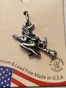 Witch Riding on a Broomstick in front of the Moon Sterling Silver Charm