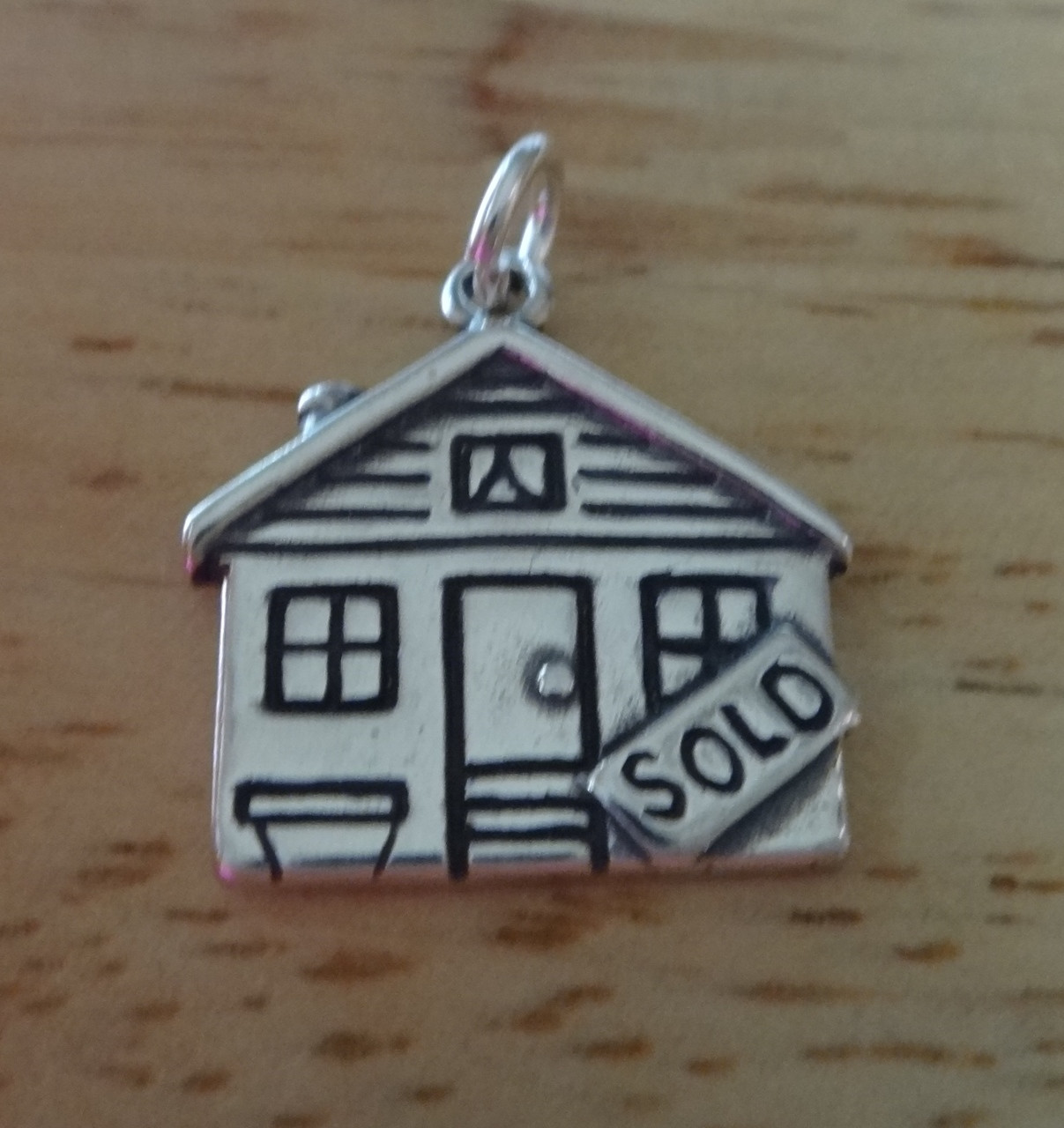 This sterling silver charm says Sold on a House! It is about 18 mm tall and 17 mm wide. It is a great gift for a realtor or for first house!