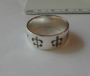 - size 6.5 to 11.25 Sterling Silver Lg 9mm Heavy 7gram Fleur de Lis Wide Band Ring