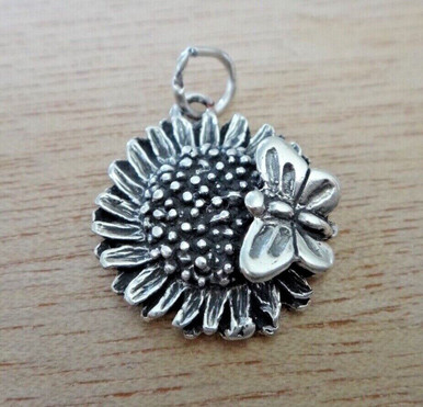 - Sterling Silver 18mm Detailed Sunflower Flower with Butterfly Charm
