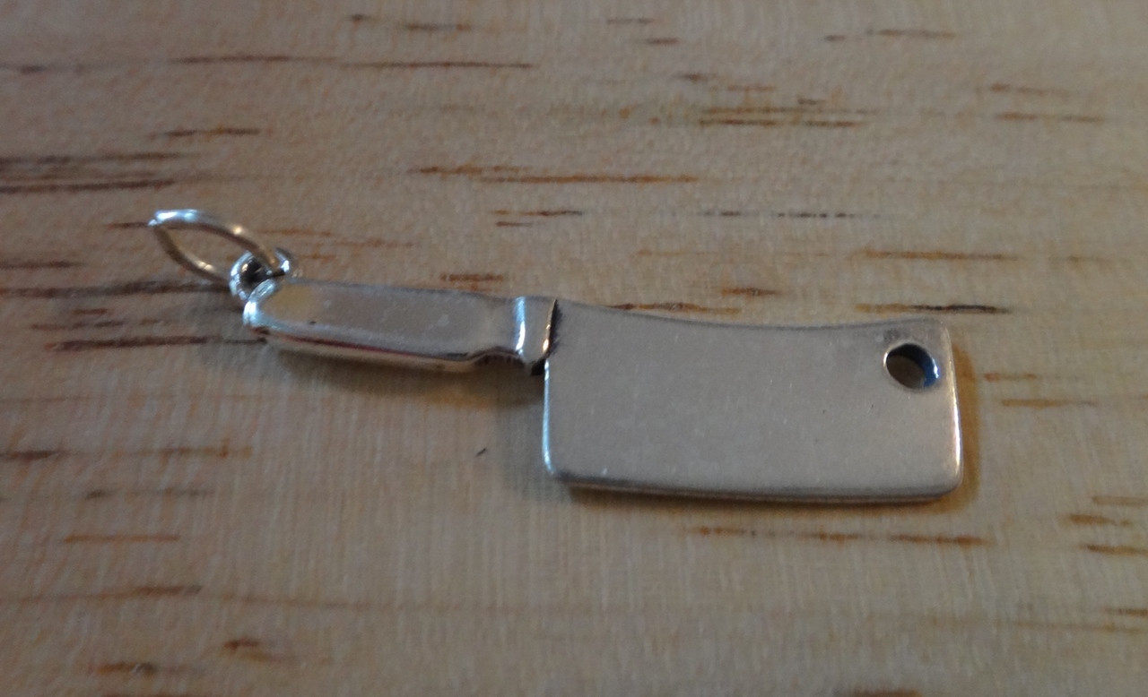 This sterling silver charm is a meat cleaver. It looks and is shaped exactly like a real one. It is wonderful! It is about 2.2 cm by .9 cm!