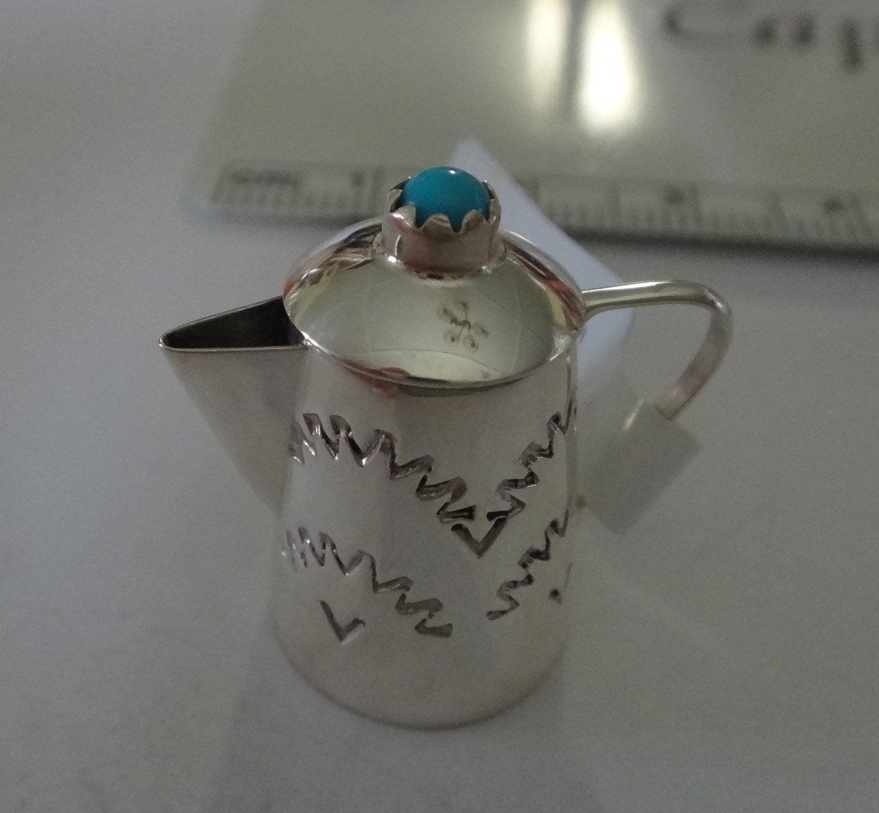 - Sterling Silver Turquoise Miniature movable lid 21x21x13mm Coffee Kettle Pot