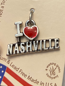 Sterling Silver 13x20mm Red enamel Heart say I Love Nashville in Tennessee Charm
